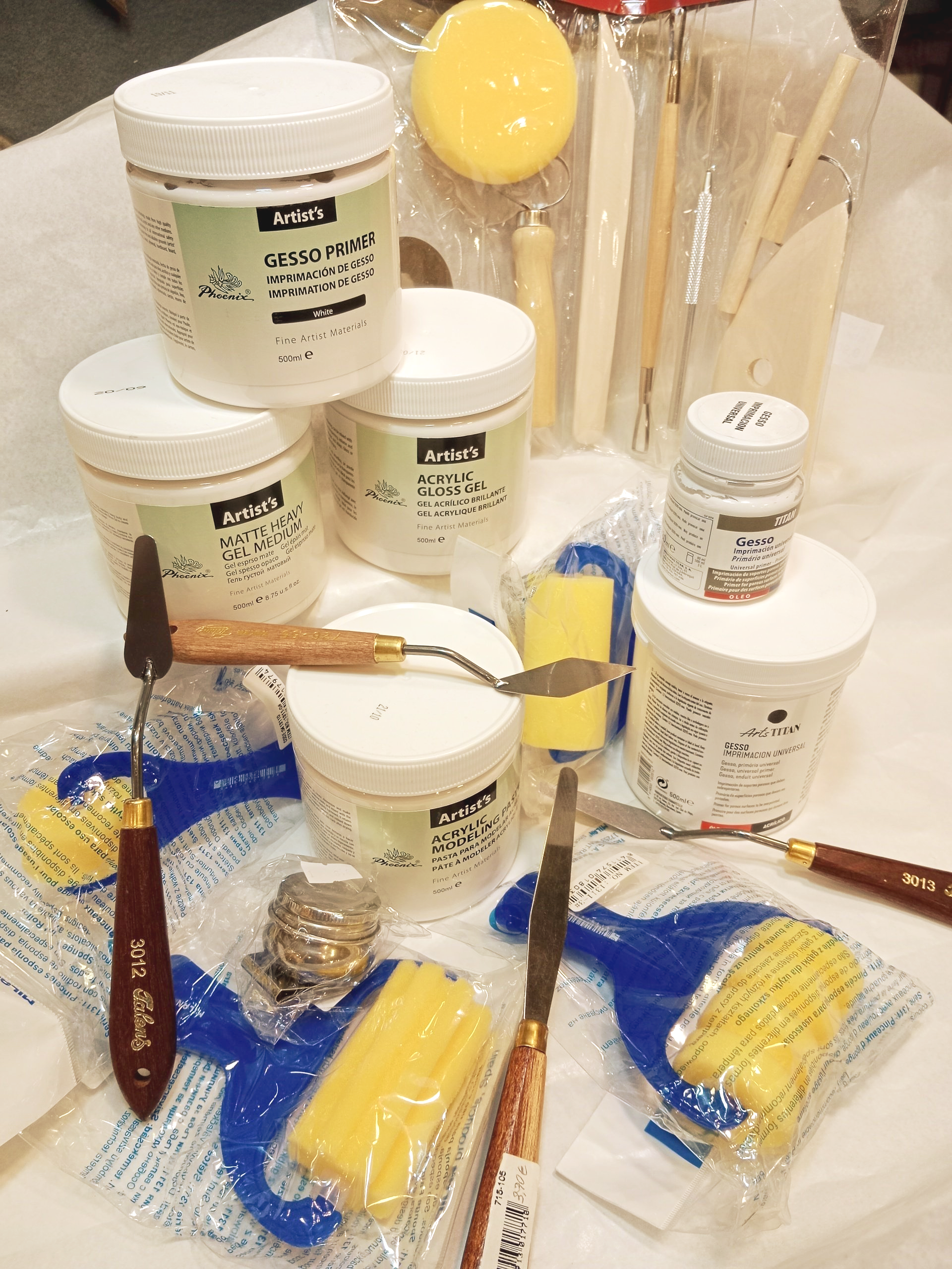 Cada tècnica requereix la seva pintura. Tenim Oli, acrílics, aquarel·la, guaix, tinta, anilines, ...